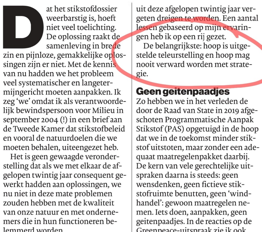 Mooie uitleg van het begrip ‘hoop’ door Pieter van Geel, vorige week in het ED. En dan te bedenken dat nagenoeg het hele beleid van het huidige kabinet gebaseerd is op hoop.