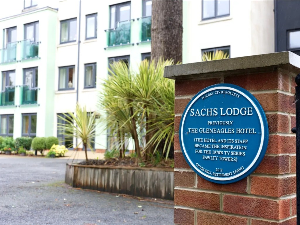 Veel aandacht dezer dagen in de media voor het 50-jarig jubileum van het briljante Fawlty Towers. Deze foto – bij The Guardian – vond ik daarin het meest opmerkelijke: de Blauwe Plaquette die is opgehangen voor de ingang van het ‘echte’ Fawlty Towers in Torquay.