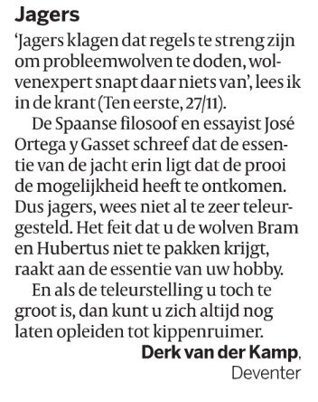 Scherpe ingezonden brief, onlangs in de Volkskrant.