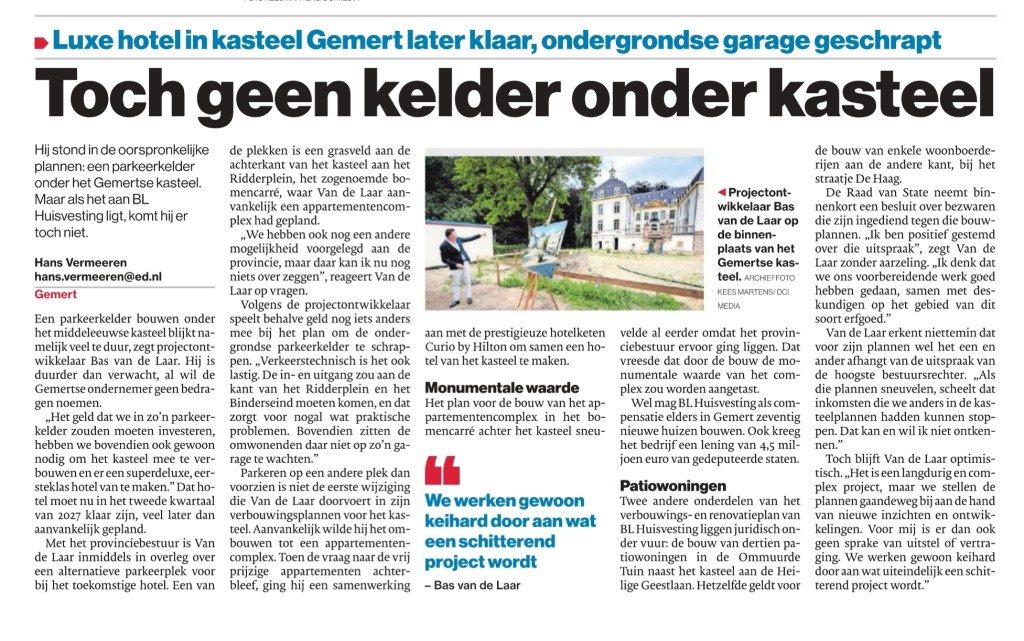 Altijd al gedacht dat het moeilijk zou zijn om een ondergrondse parkeergarage te maken tussen een middeleeuws kasteel en een meters diepe gracht. Het blijkt inderdaad te duur.