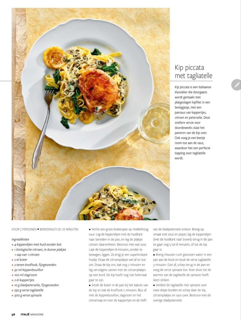 Prima gerecht, opgeduikeld in het Italië Magazine. Pro-tip 1: gebruik blokjes kipfilet in plaats van een kippedij. Pro-tip-2: Eén citroen, in plakjes gesneden, is genoeg. Een tweede, uitgeperste citroen maakt het gerecht te zuur.