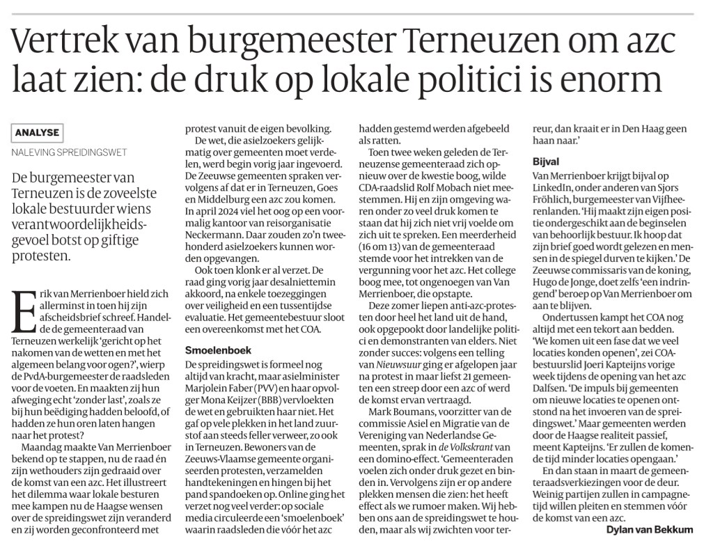 De conclusie in de Volkskrant is terecht: de druk op lokale politici in kwesties als de opvang van asielzoekers is enorm, dankzij de chaos in Den Haag.