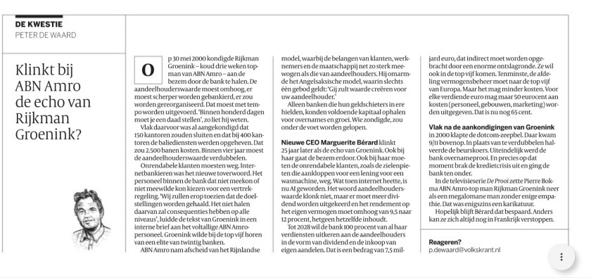 En in de Volkskrant plaatst Peter de Waard met een blik op de geschiedenis van deze bank kritische kanttekeningen bij die plannen.