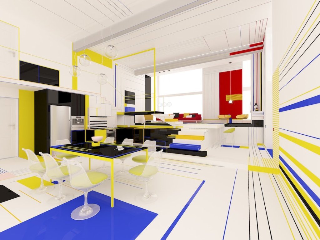 Ik weet het niet hoor. Maar ik heb het gevoel dat de interieurontwerper die we gevraagd hadden om een strakke en kleurrijke inrichting van onze eetkeuken wat al te ver is doorgeschoten in zijn plan.