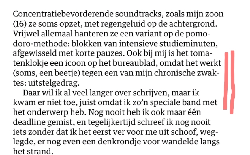 Prachtige introductie van een verhaal over de oorzaken van uitstelgedrag. De schrijver – Christiaan Weijts – had al eerder over dit onderwerp willen schrijven. Alleen kwam het er maar niet van. Het verhaal is hier terug te lezen.
