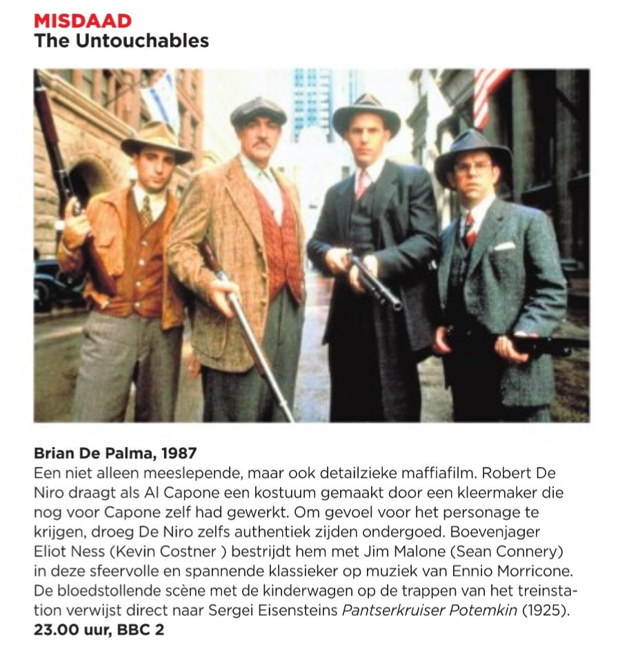 Vanavond op tv, deze klassieker van Brian De Palma uit 1987. Een aanrader.