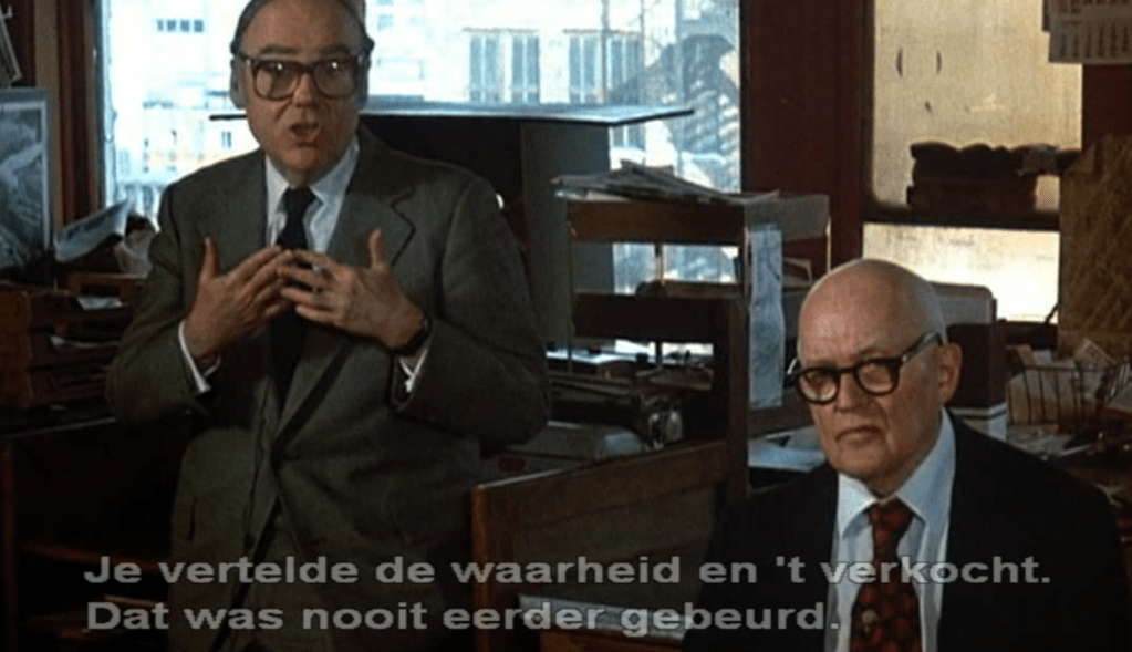 Stadverslaggever (l) en hoofdredacteur (r) van een (fictieve) krant in de film Zelig van Woody Allen uit 1983. Jarenlang bracht de krant kennelijk vooral nepnieuws. Met succes. Toen brachten ze een keer echt nieuws en wilden de abonnees dat óók lezen. Tot hun grote verbazing.