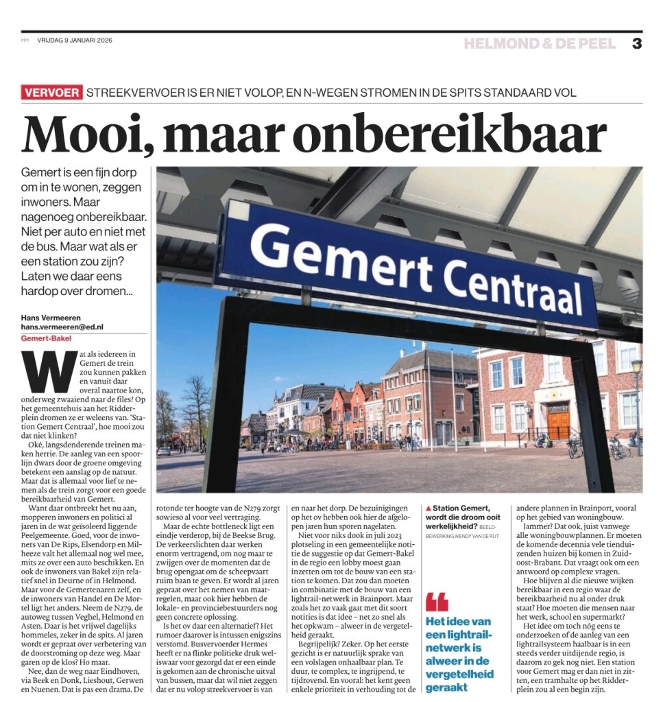 Even hardop dromen. Over een mooi maar onbereikbaar dorp ergens in De Peel. Waar op een dag een trein stopt omdat er een station is gebouwd en spoorrails zijn aangelegd. Lees hier de online-versie.