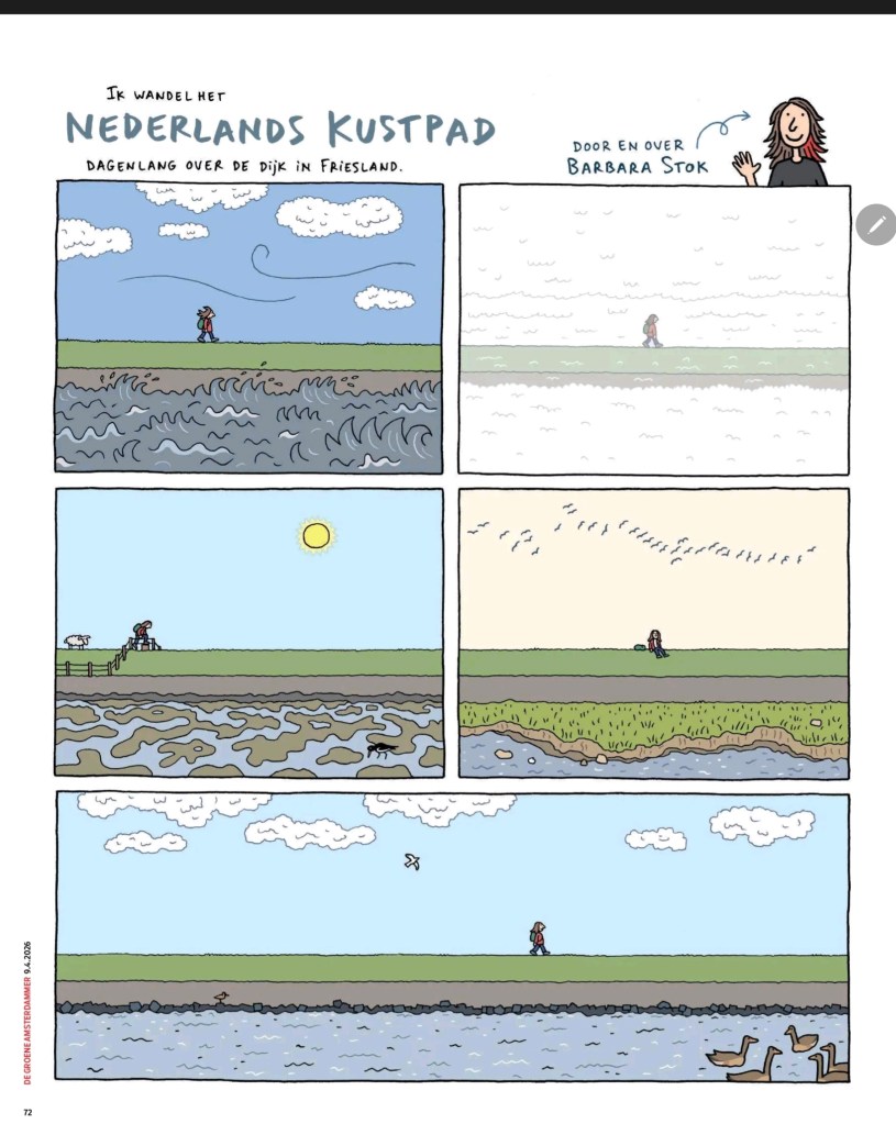 Wij liepen het Kustpad ook, van Sluis in Zeeuws-Vlaanderen tot Den Helder en Texel in Noord-Holland. En een stukje Friesland intussen – dat er precies zo uitziet als hierboven geschetst.