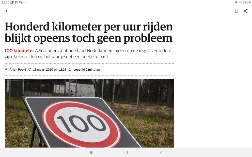 En daar is niks mis mee hoor, prima wandeling. Lekker ontspannend. En daarna weer aan de slag op mijn werkkamer achter m’n laptop. Maar het vooruitzicht dat dit wel eens tot 1 juni zou kunnen gaan duren, is toch wel wat beklemmend.