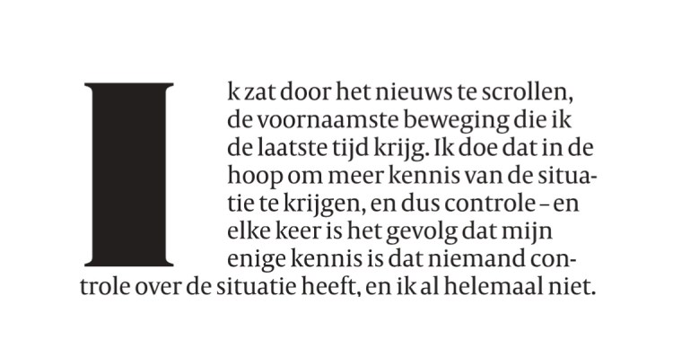 Ze komen uit de pen van Volkskrant-columniste Aaf Brandt Corstius, deze twee zinnen die gisteren in de krant stonden. En ze omschrijven de huidige gemoedstoestand van waarschijnlijk veel mensen heel treffend. In ieder geval wel die van mij.