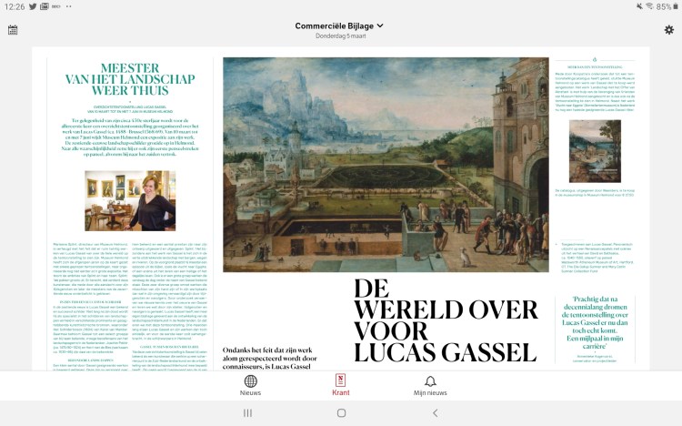 Maar liefst acht pagina’s over de – vermoedelijk – Helmondse schilder Lucas Gassel vandaag in NRC. Indrukwekkend. Al zal dat de organisatie van het Helmondse Lucas Gassel-jaar een flinke duit gekost hebben. Het gaat immers om een commerciële bijlage over deze schilder. Die in onze eigen krant donderdag nog mild bekritiseerd werd door collega Rob Schonen vanwege zijn eentonige beeldtaal en beperkt kleurenpalet.