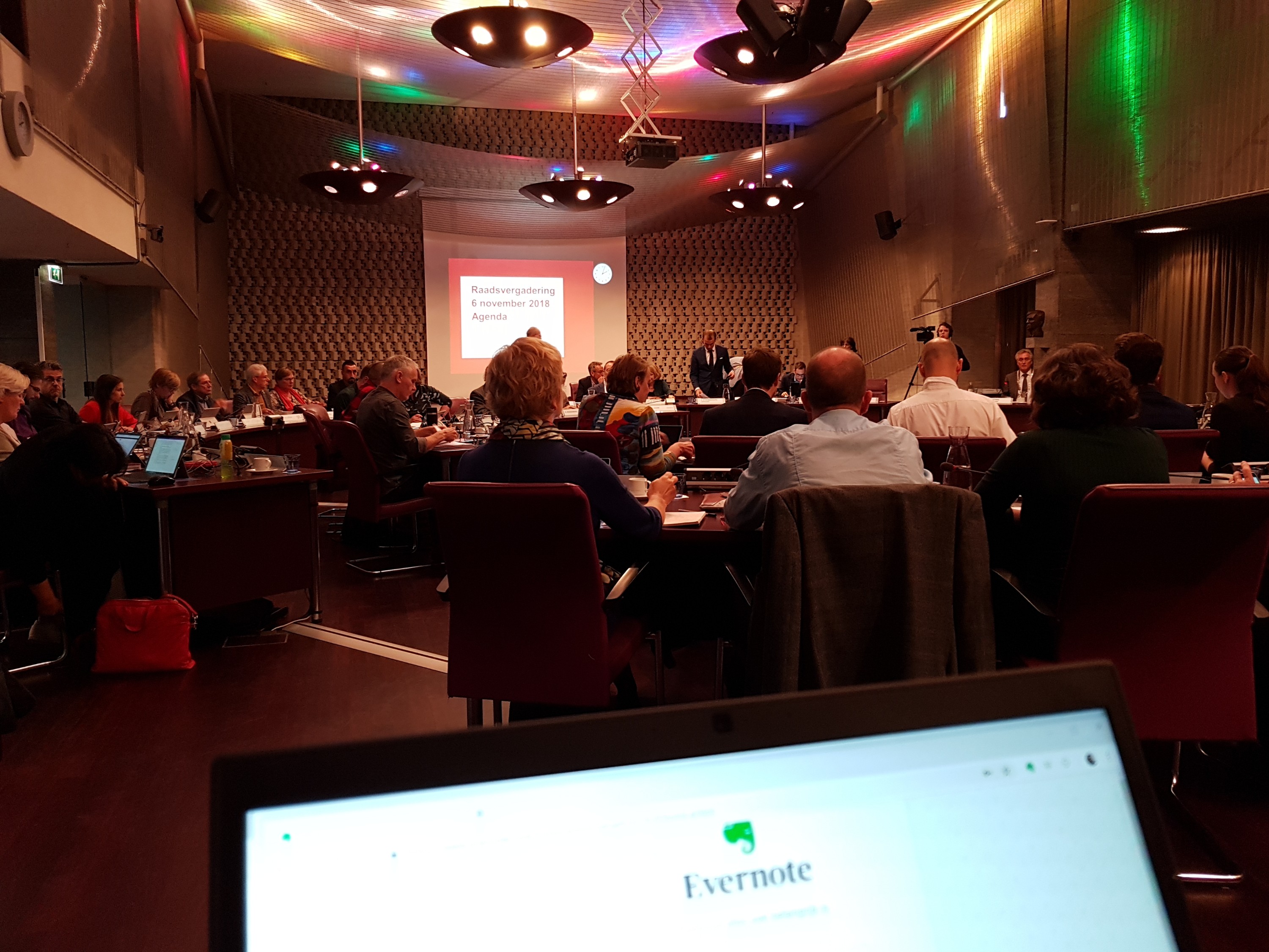 Dit is tot vanavond laat mijn tijdelijke werkplek. Vanwege het marathonbegrotingsdebat in de Eindhovense gemeenteraad. Beoogde eindtijd; een uurtje of elf, half twaalf.